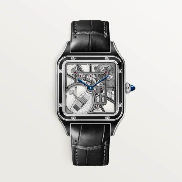 Baignoire mücevher saat, mini model, quartz mekanizma. Beyaz altın 750/1000 kasa ve bilezik, toplam 7,98 karat 176 adet yuvarlak kesim pırlantayla set edilmiş, beyaz altın 750/1000 kadran, toplam 0,66 karat 131 adet yuvarlak kesim pırlantayla set edilmiş, parlatılmış gri çelikten kılıç şeklinde ibreler. Kasa çapı: 24,8 x 17,1 mm, kalınlık: 8,13 mm. 3 bar’a kadar (yaklaşık 30 metreye/100 fite kadar) suya dayanıklı.