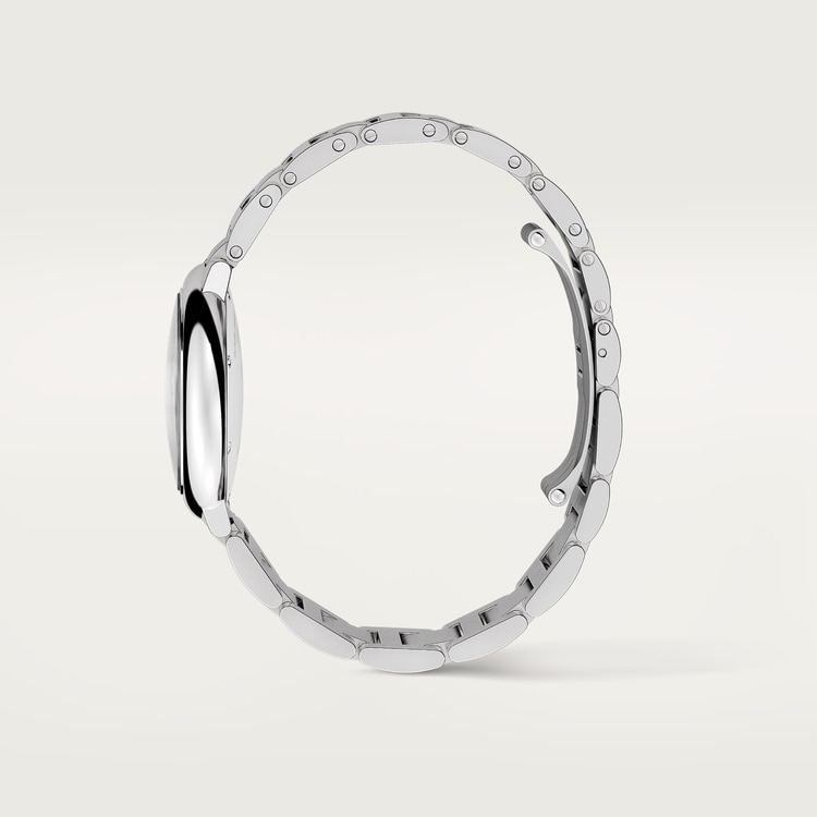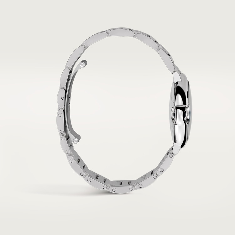 Ballon Bleu de Cartier kol saati, 33 mm, otomatik kurmalı mekanik mekanizma. Çelik kasa, sentetik spinel kabaşonla süslenmiş yivli kurma kolu, gümüş rengi guilloché opalin kadran, Roma rakamları, mavileştirilmiş çelikten kılıç şeklinde ibreler, safir kristal, çelik bilezik. Kasa boyutları: çap: 33 mm, kalınlık: 9,96 mm. 3 bar’a kadar (yaklaşık 30 metreye/100 fite kadar) suya dayanıklı.