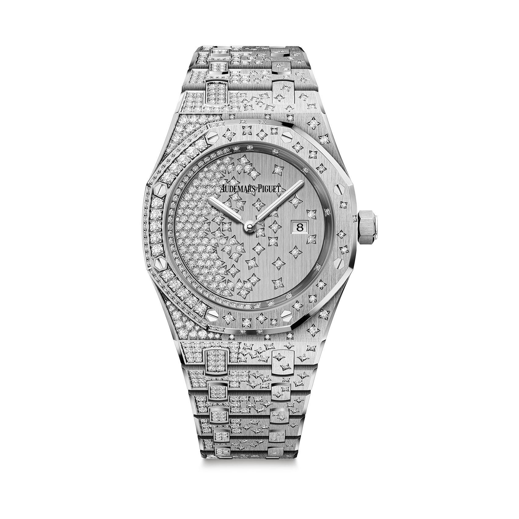 DIALDiamond-set 18-carat white gold dial, white gold Royal Oak hands with luminescent coating