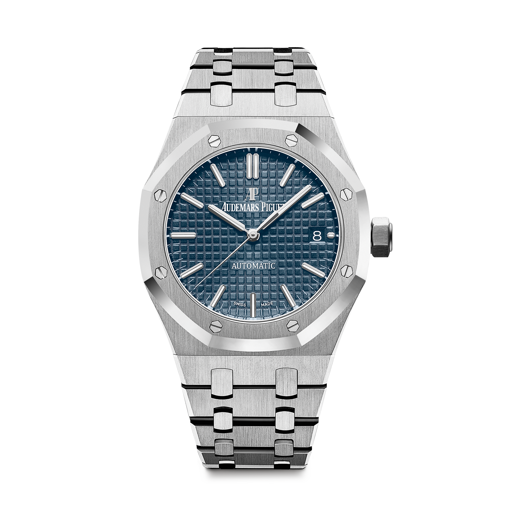 DIALBlue dial with “Grande Tapisserie” pattern, white gold applied hour-markers and Royal Oak hands with luminescent coating